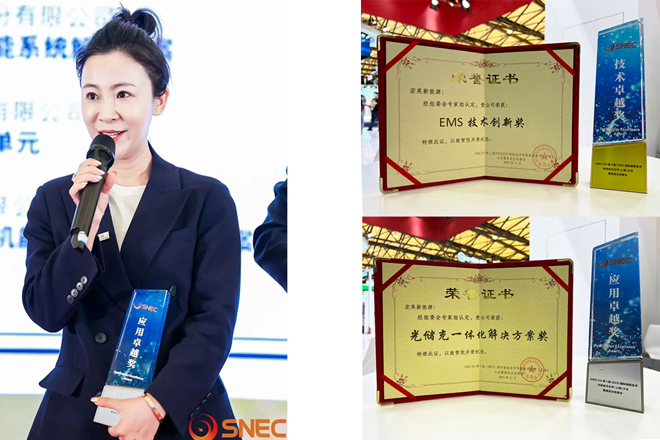 第八届SNEC展会上,快盈荣获由SNEC组委会颁发的“储能产业EMS技术创新奖”“储能产业光储充一体化解决方案奖”两项荣誉。感谢主办方的认可,让我们更加坚定探求新能源领域技术创新,推进储能行业绿色零碳转型的决心。