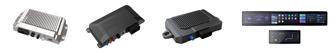 此次快盈智能展出了行泊一体机、T-BOX、高精度融合定位终端、智能座舱四联屏等汽车电子产品,这些产品都具有高集成度、高性能、高稳定性以及高性价比等特点,为客户提供从核心部件、控制系统及平台全生态的智能化解决方案。
